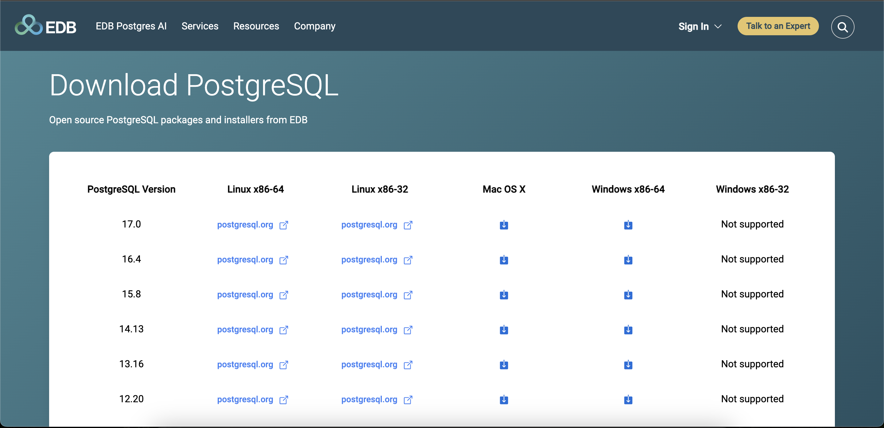 PostgreSQL: Downloads