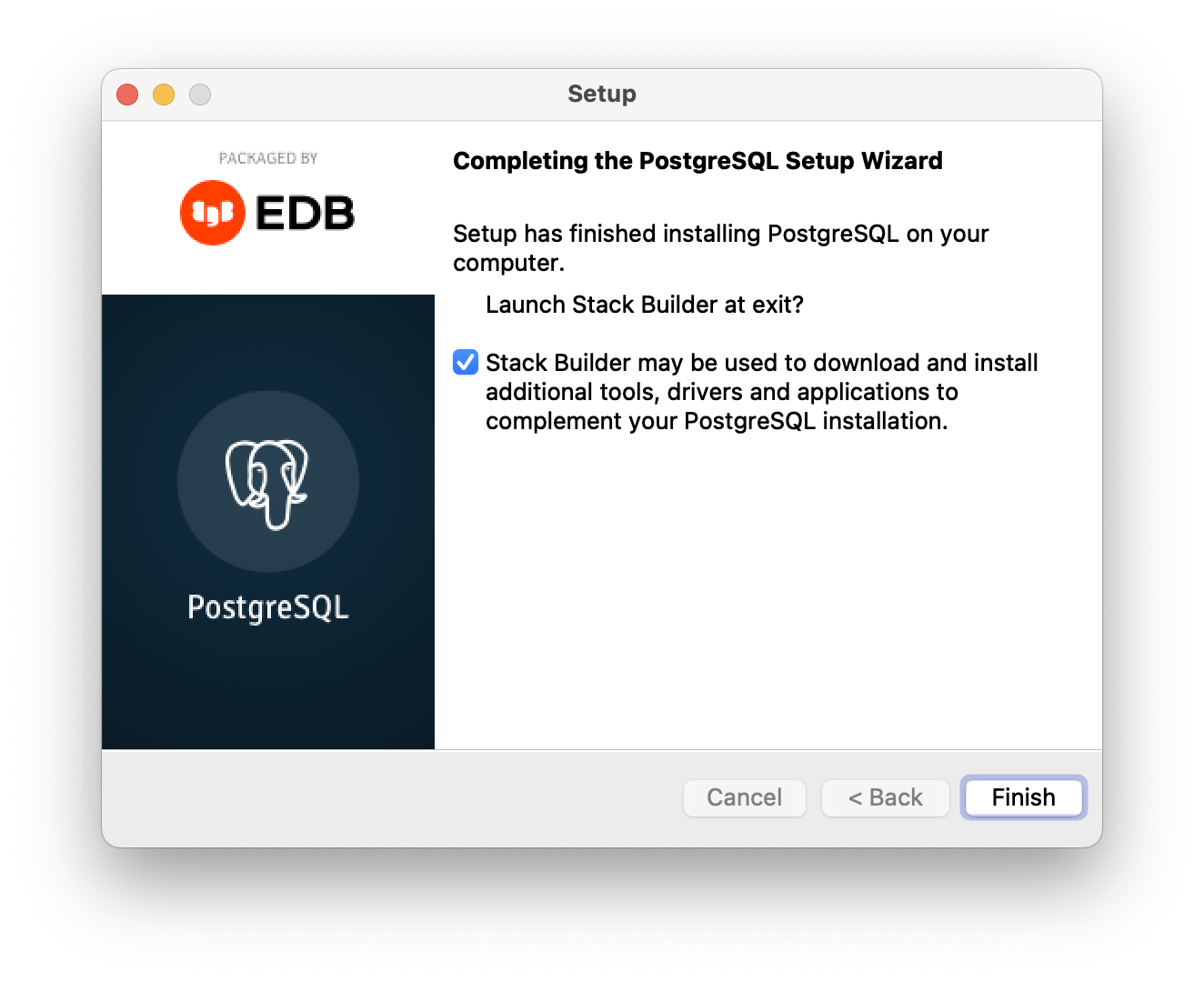 8. 설치가 끝나면 Stack Builder 를 열겠냐는 메세지가 나오는데 일단 해제하기! 필요할 때 설치하기~