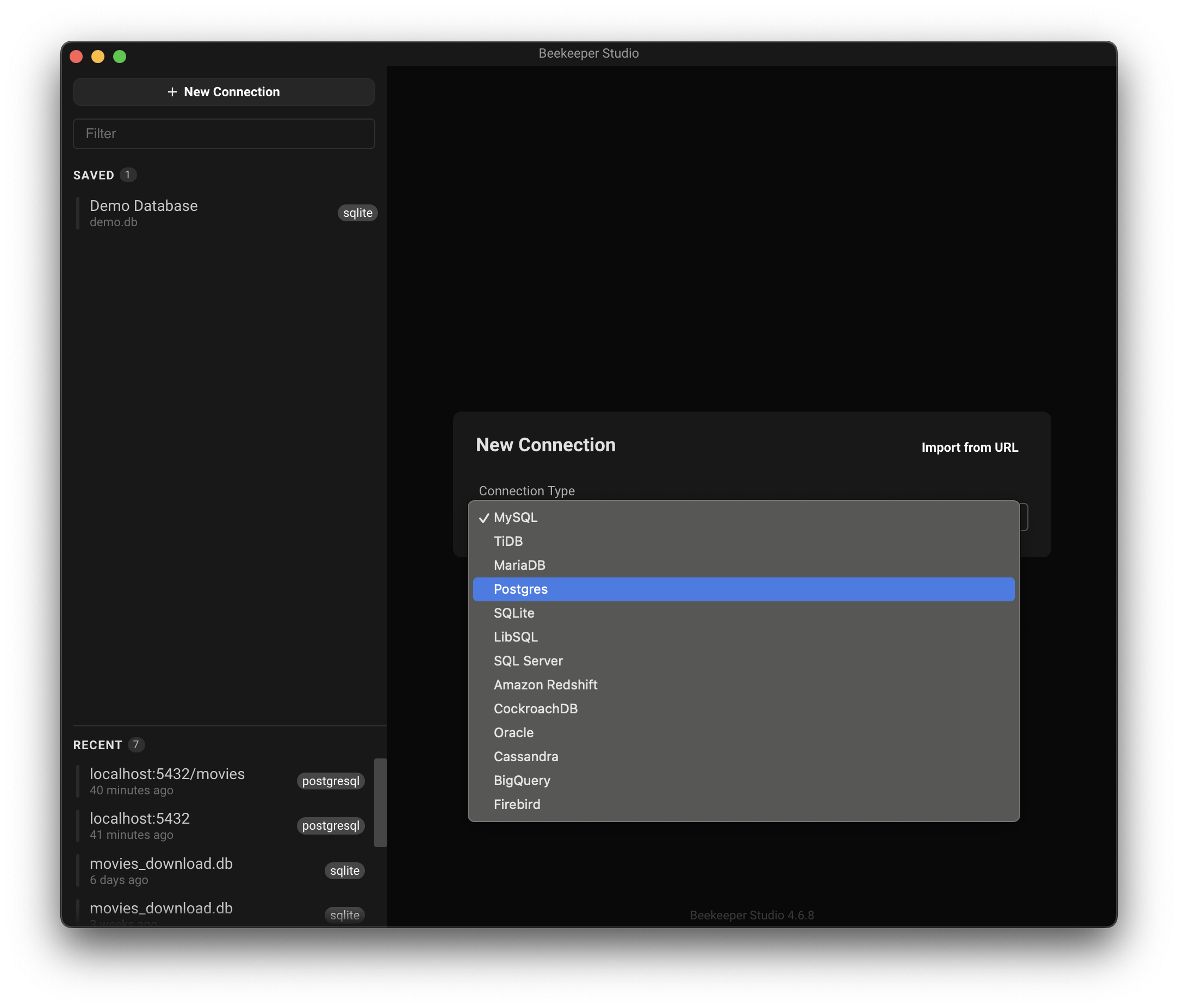 1. beekeeper 를 실행해주고 Postgres를 선택해준다.