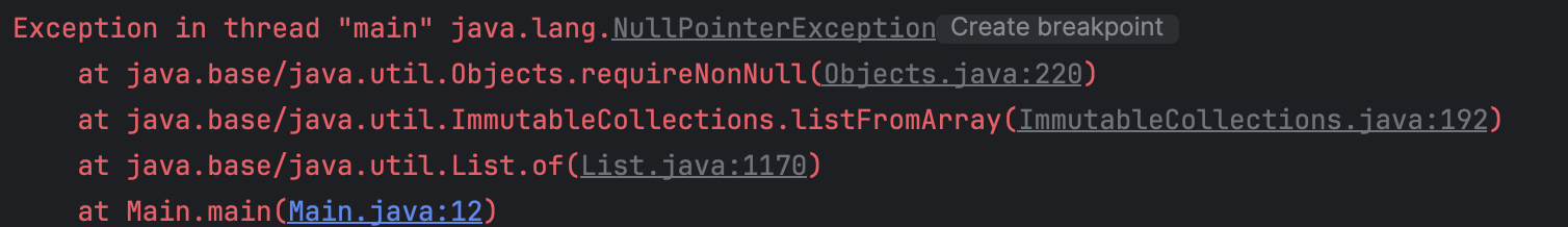List.of는 null 값을 처리하지 못한 다는 것을 기억하자.