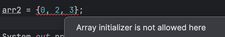약식 문법은 선언할때만 가능하여 할당 할때는 사용할 수 없다.