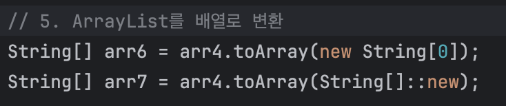 만약 ArrayList를 배열로 바꾸고 싶으면
