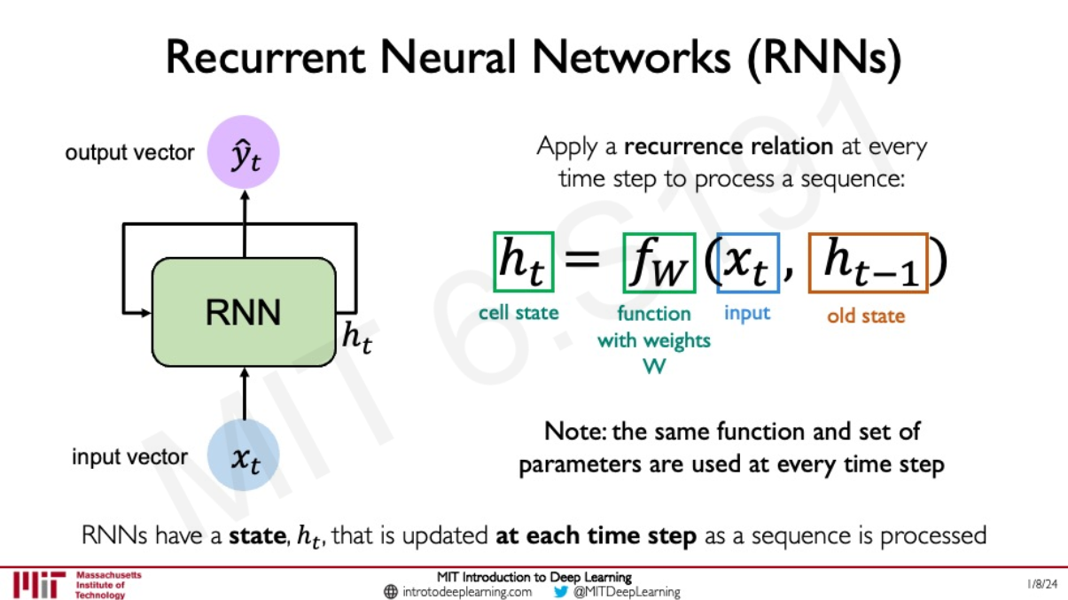 모든 정보와 슬라이드는 "MIT 6.S191 (2023): Recurrent Neural Networks, Transformers, and Attention"을 참고했다.